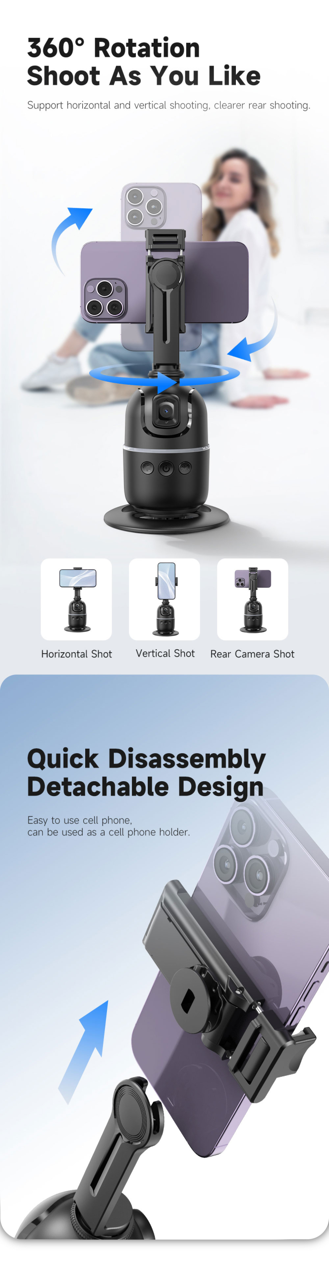 5. 360° Horizontal And Vertical Shooting Of Mobile Phone Stand, 180° Front And Rear Shooting