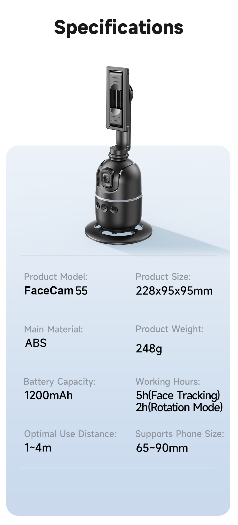 FACECAM 55 adalah gimbal pintar dengan teknologi AI face tracking 360°, yang memungkinkan Anda merekam video secara otomatis tanpa perlu aplikasi tambahan. Menggunakan chip AI IFLYTEK, perangkat ini mampu mengikuti gerakan wajah secara cerdas dan presisi, ideal untuk vlogging, live streaming, video call, hingga pembuatan konten tanpa bantuan operator kamera.