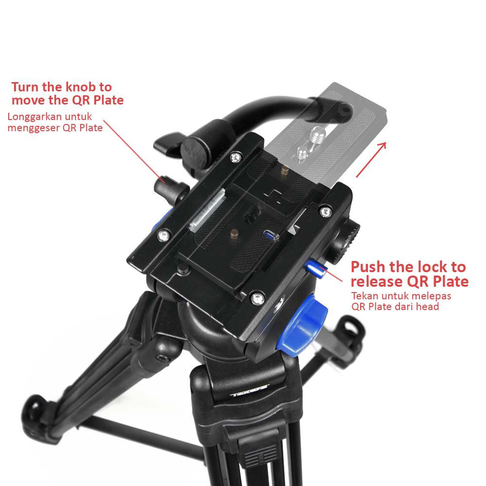 Dilengkapi dengan fluid head yang halus dan responsif, head ini dapat dilepas dan diganti dengan head lain sesuai kebutuhan. Kaki tripod menggunakan spike feet untuk daya cengkeram maksimal untuk kegiatan outdoor, dilengkapi dengan Horse Shoe Mat yang dapat dilepas pasang dengan mudah, memberikan kenyamanan lebih serta kestabilan tambahan saat digunakan di berbagai permukaan indoor.