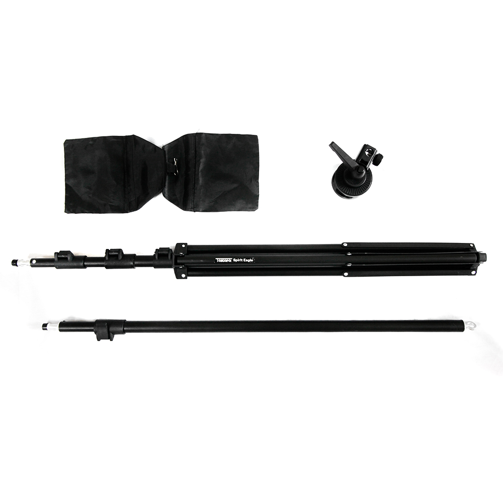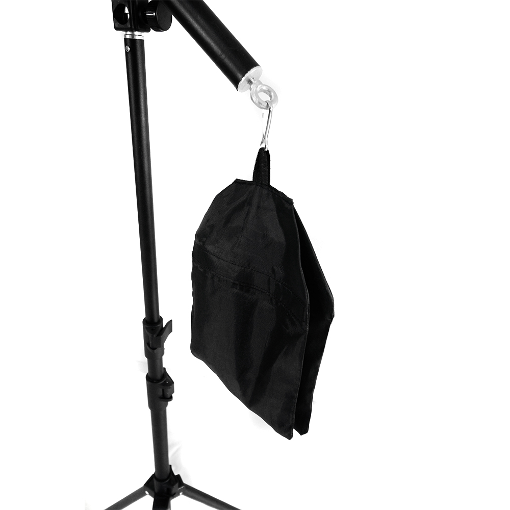 Saat dilipat, panjangnya hanya 90 cm, memudahkan penyimpanan dan transportasi. Saat digunakan, tinggi maksimalnya mencapai 2,5 meter. Boom arm dapat digunakan bersama sand bag yang dapat diisi beban untuk menjaga keseimbangan sistem lighting Anda.