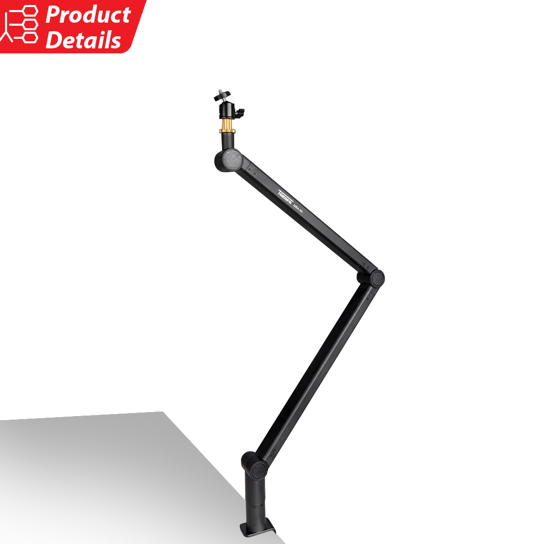 Sistem C-Clamp yang kuat dan aman memastikan pemasangan boom arm tetap stabil pada meja kerja, tanpa goyangan. Mampu menopang hingga 2 kg, MBA-50 menjadi pilihan ideal untuk rig dengan beban lebih berat—baik di studio maupun di lapangan.