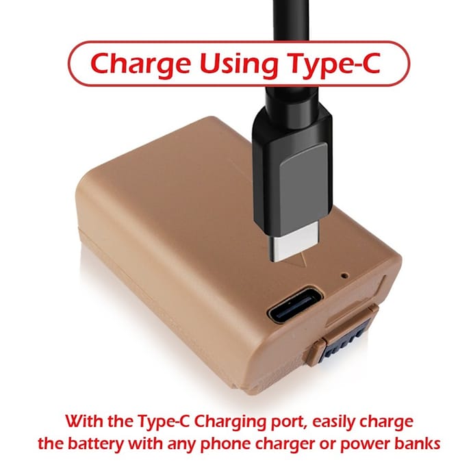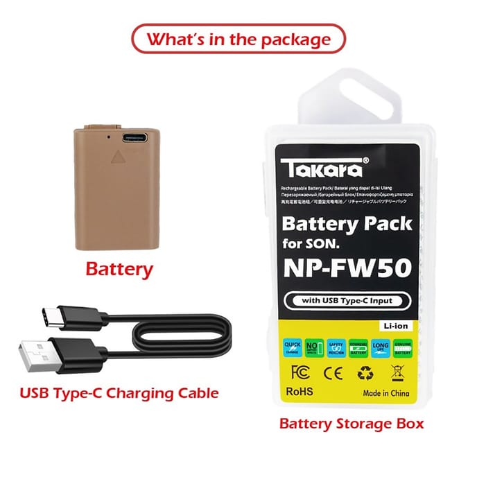 Takara NP-FW50 Battery with USB Type-C for Sony Camera