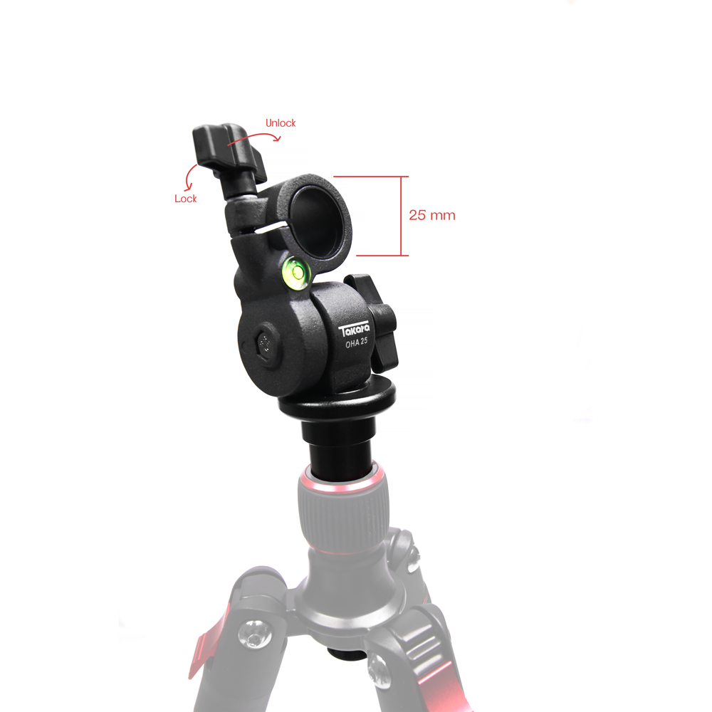TAKARA OHA 25 dibuat dari aluminium alloy yang kuat dan mampu menopang beban hingga 5 kg. Aksesori ini kompatibel digunakan pada Tripod TAKARA ROVER 66, ROVER 66V, ROVER 77, serta tripod-tripod dengan kolom tengah berukuran 25 mm yang dapat dilepas, yaitu dengan desain serupa ROVER 66.