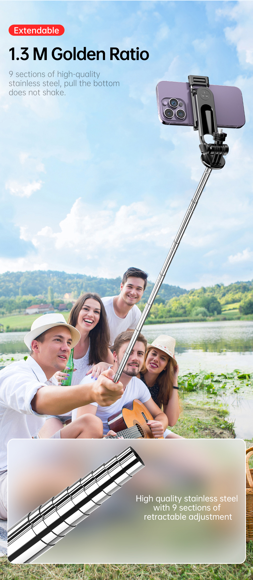 – Gagang teleskopik 9 segmen dengan ketinggian hingga 135 cm