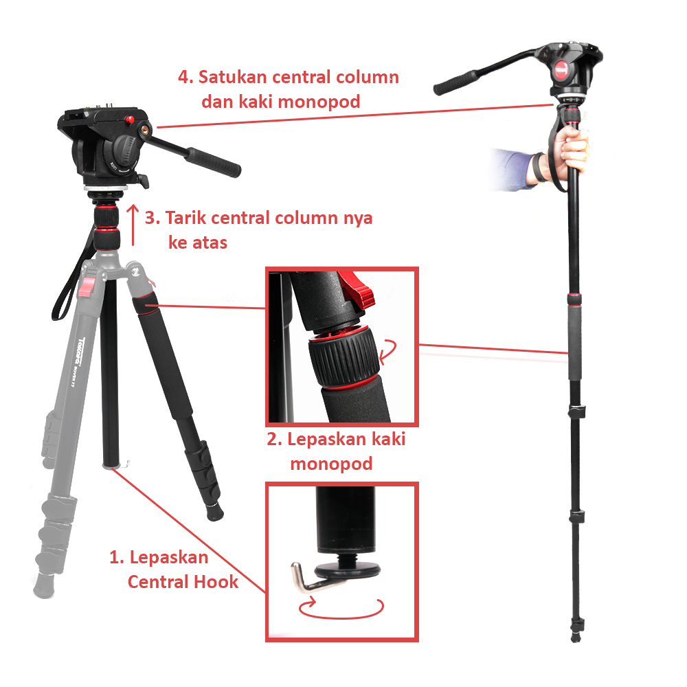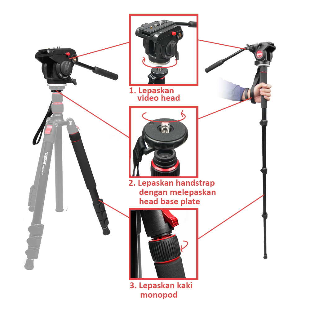 TAKARA Rover 77 salah satu kakinya dapat dilepas menjadi monopod yang mudah digunakan.