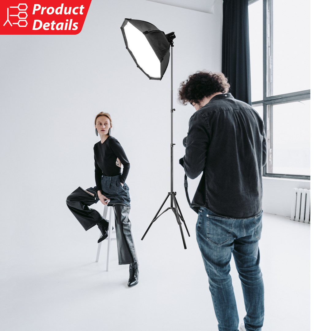 Stand ini kompatibel dengan berbagai aksesoris pencahayaan seperti payung reflektor atau softbox, memungkinkan pengguna untuk menciptakan efek cahaya sesuai kebutuhan.