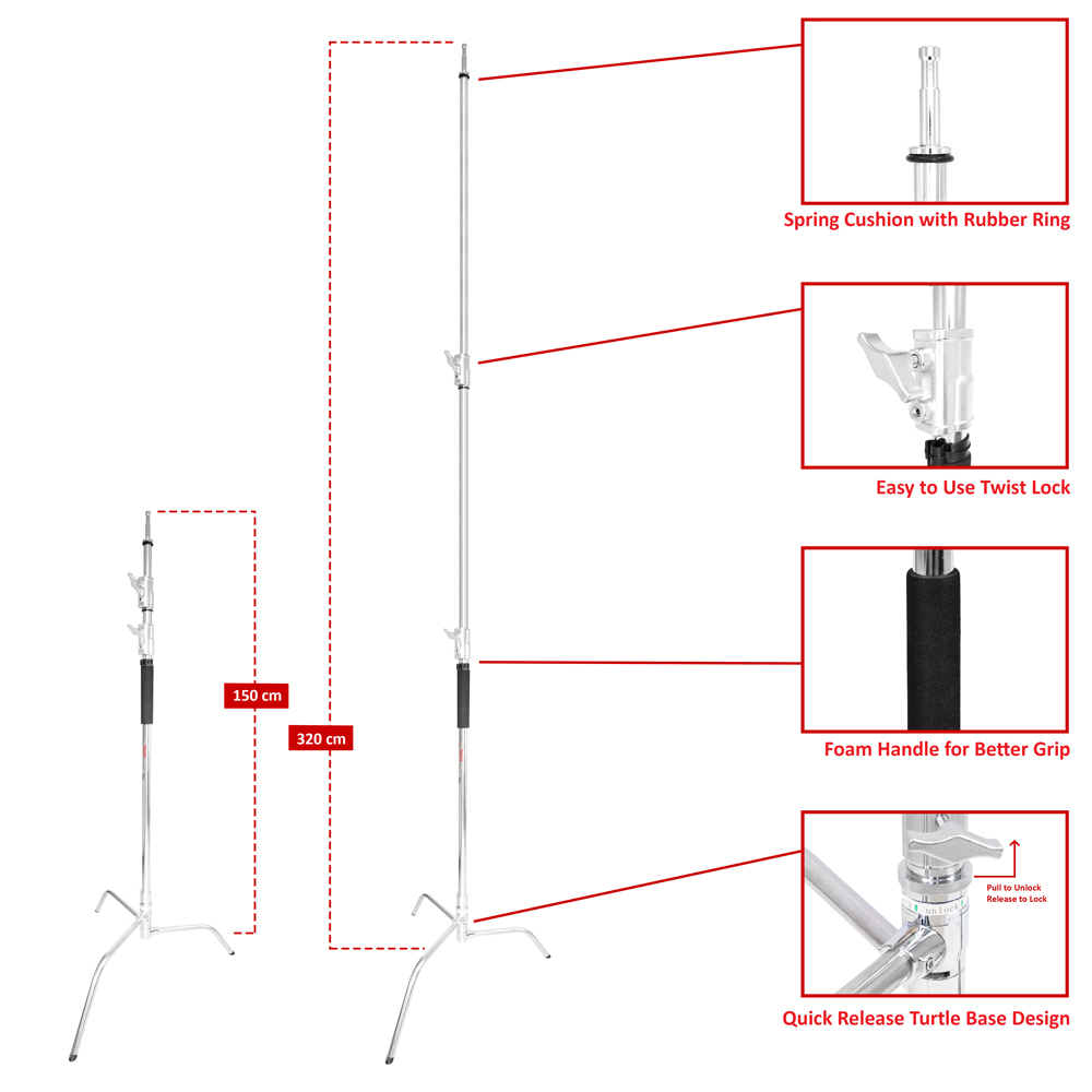 Light stand ini dilengkapi dengan sistem Quick Release Turtle Base yang memungkinkan kaki dapat dibuka hanya dengan satu tangan, mempercepat proses setup dan penyimpanan. Setiap section tiangnya didukung dengan Twist Lock yang kuat serta peredam Spring Cushion dan Rubber Ring, memberikan perlindungan maksimal terhadap peralatan saat menurunkan tiang dengan cepat. Desainnya yang praktis dan fungsional menjadikan SPIRIT BETA LITE sebagai pilihan ideal untuk profesional pencahayaan.