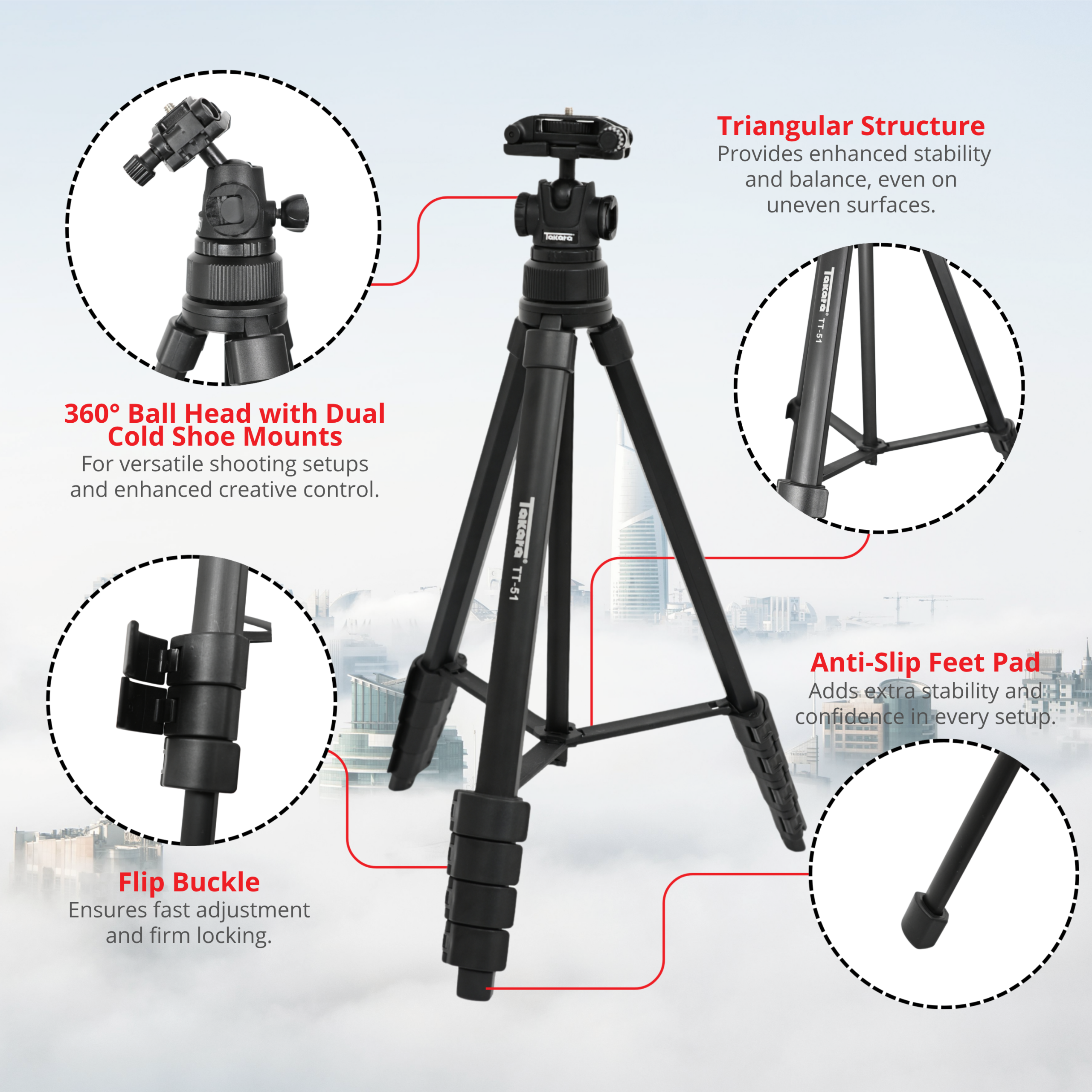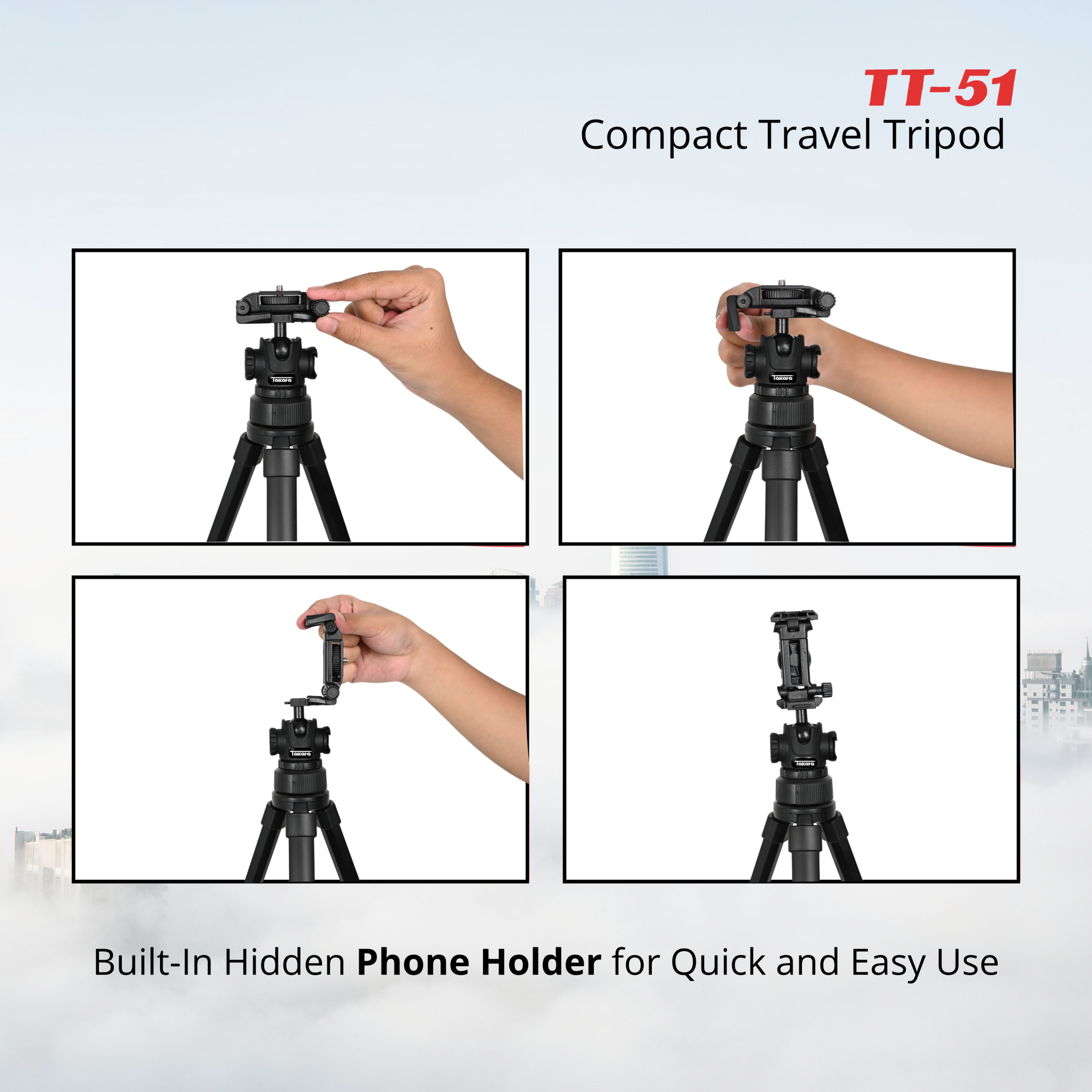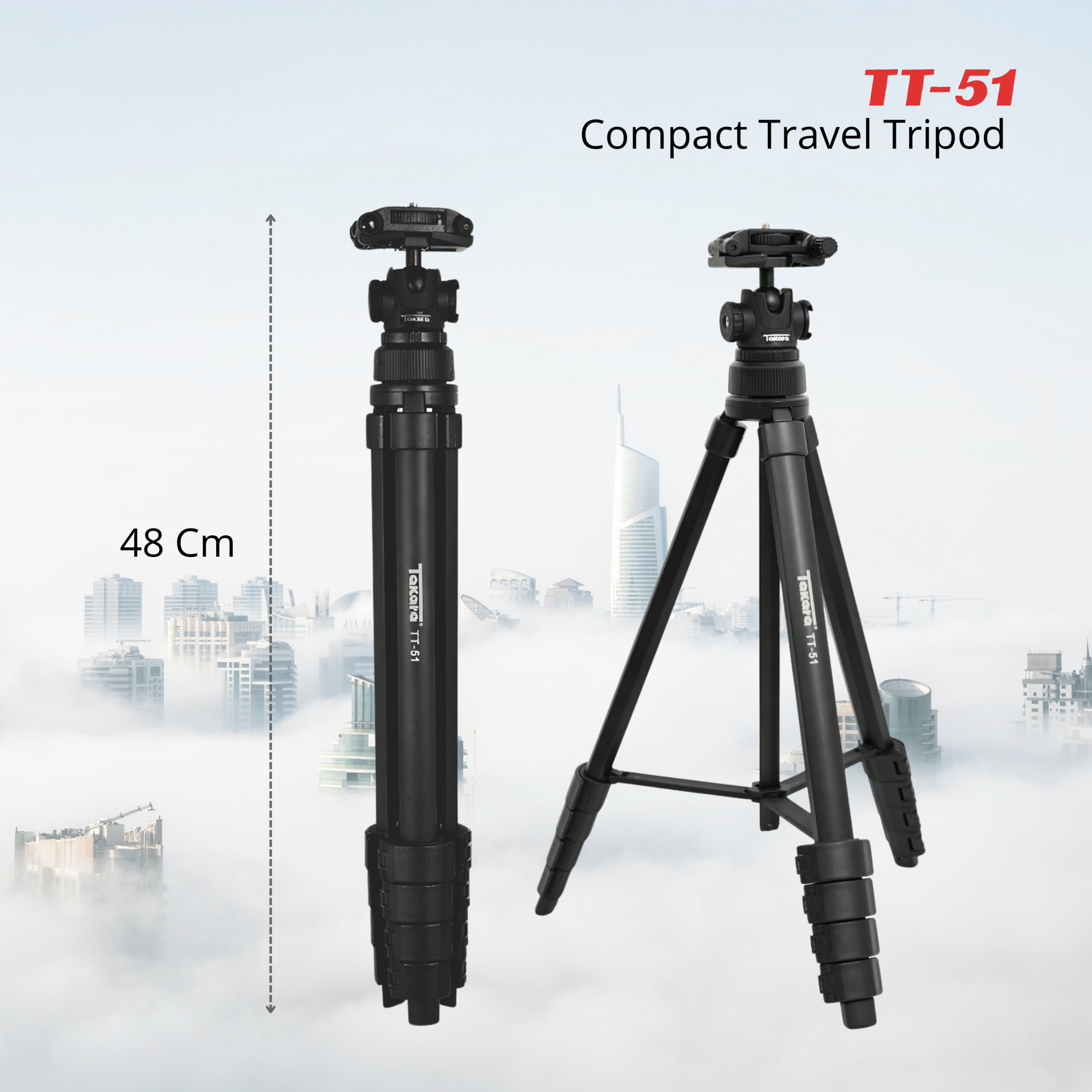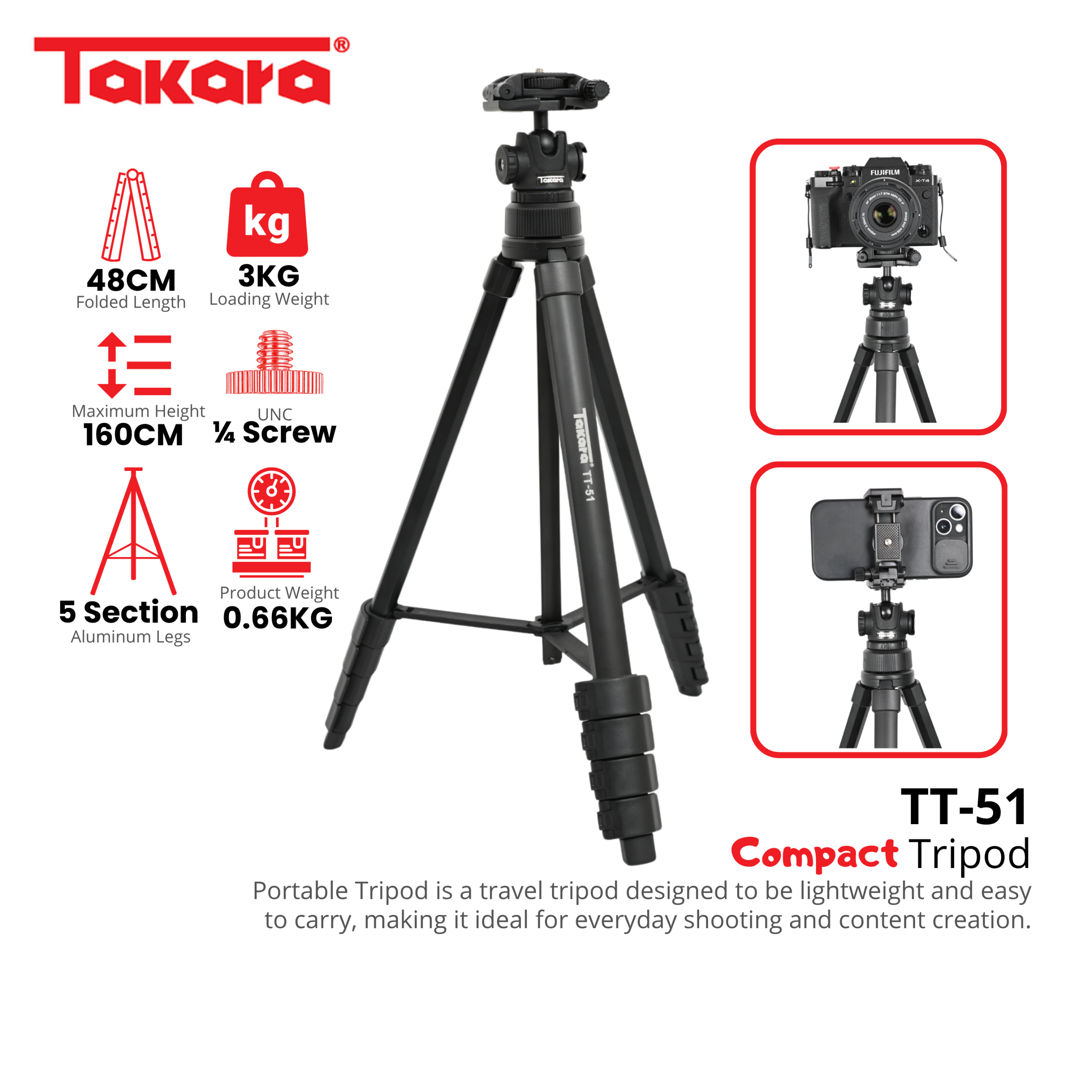 Takara TT-51 Tripod Traveller with Ball Head untuk Kamera & Smartphone Compact & Portable Traveler Lightweight Tripod