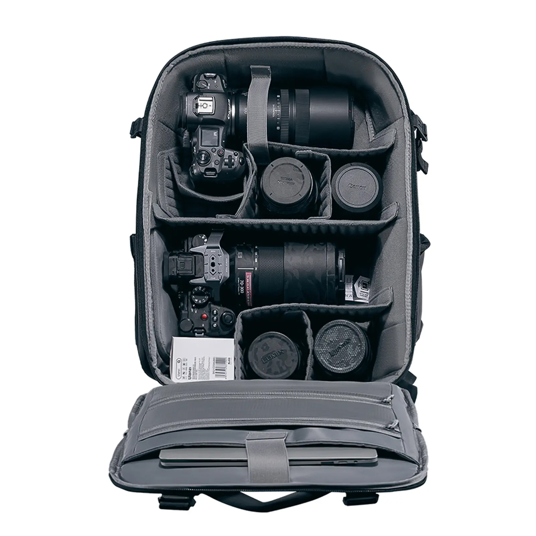 • 22L Large Capacity Storage: This professional camera bag at least holds 2 cameras and 4 lenses. The personalized dividers offer adaptable organization for your necessities and camera equipment, ensuring it’s the ideal bag for any situation. The camera stand can be attached to the bottom of the camera bag.